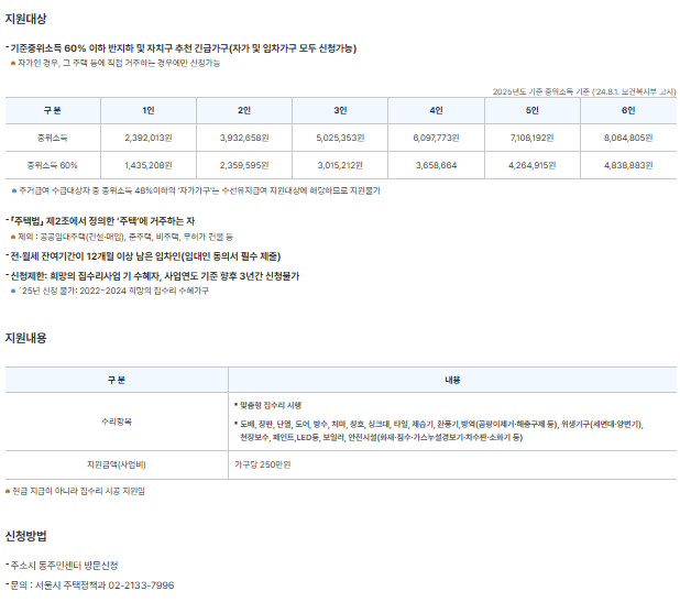 1. 서울시 집수리 보조금 지원 대상 및 조건