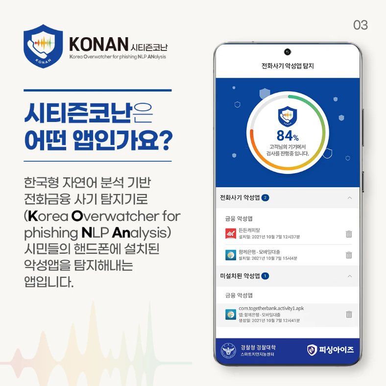 시티즌코난앱은 단순히 보이스피싱을 차단하는 것뿐만 아니라, 사용자들이 보이스피싱 수법을 미리 학습할 수 있도록 교육 콘텐츠도 제공합니다.