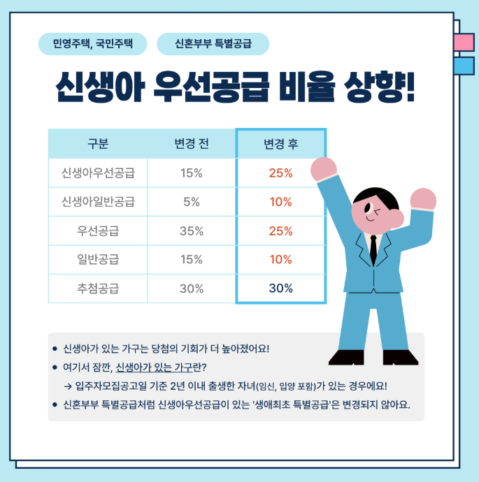 2025년부터 **특별공급 대상 신혼부부 중 출산을 한 가정**은 우선 배정 혜택을 받게 됩니다.