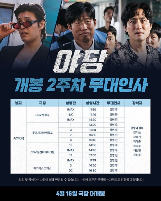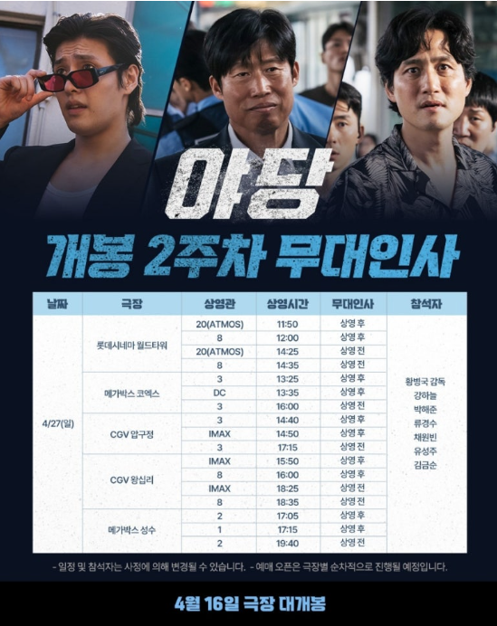 | 2025.04.28 (일) | 14:00 / 17:00 | 롯데시네마 월드타워 / CGV 목동 | 유해진, 채원빈 |