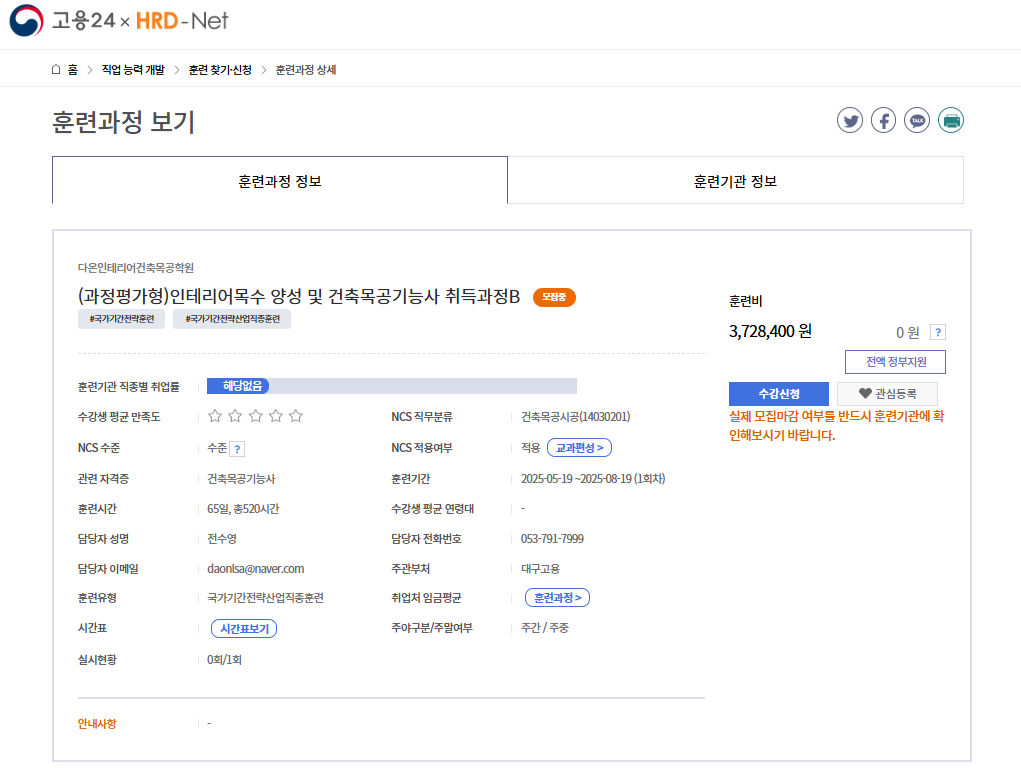 - 검색 결과에서 관심 있는 훈련 과정을 선택하여 상세 정보를 확인합니다.